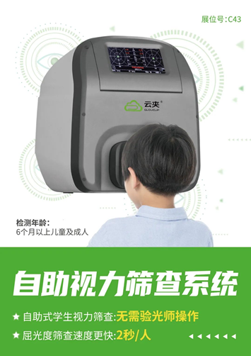 此次展會(huì),云夾新產(chǎn)品——自助視力篩查系統(tǒng)將屈光度篩查這一環(huán)補(bǔ)齊,形成真正的近視防控閉環(huán)。與傳統(tǒng)視力篩查相比,云夾自助視力篩查系統(tǒng)操作簡(jiǎn)單,容易上手,可實(shí)現(xiàn)1人1機(jī)1天1校。大大降低人工成本和時(shí)間成本,同時(shí)篩查結(jié)果可自動(dòng)保存、批量導(dǎo)出,數(shù)據(jù)不易出錯(cuò)及丟失。結(jié)合云夾眼鏡夾扣,可全面了解孩子的視力情況,便于建立更完整的個(gè)人視力檔案,為近視防控提供科學(xué)支持。